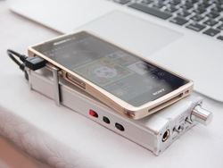 またESS製DACチップを搭載したDAC兼ヘッドホンアンプ「THE Glove A1」も展示されていた。本機はAK120との組み合わせが想定されており、AK120の光デジタル出力を本体端子に直に接続した上で、AK120本体をホールドして使用する製品だ。