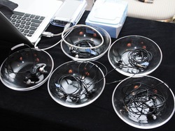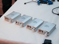 iFI-Audioの製品では、11.2MHz対応など最新スペックを網羅したことやそのサウンドで注目を集めるUSB-DAC/ヘッドホンアンプ「micro iDSD」(関連ニュース)の最終製品バージョンが初披露。多くの来場者が実際にそのサウンドを確かめていた。さらに、iFi-Audioのサポートで録音され、本日19日発売の「Net Audio」誌のvol.15特別付録となった「TECHNOBOYS PULCRAFT GREEN-FUND」による11.2MH音源を、micro iDSDで試聴するデモも行われた。