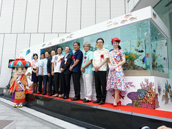 沖縄の“美ら海"の様子を4K映像やDSD収録音源などで銀座ソニービルに再現するソニーのイベント「47th Sony Aquarium」が開幕。初日となる本日7月25日は、本物の沖縄の魚たちが泳ぐ大水槽の除幕式も行われた。