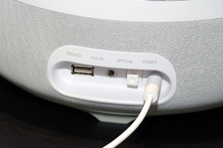 Bluetooth/AirPlay/DLNAに対応している点も特徴。Bluetoothはバージョン3.0で、対応プロファイルはA2DP/AVRCP。無線での音楽再生のほか、角型光デジタル入力端子や3.5mmステレオミニ端子を備え、プレーヤー等を有線接続して使用することもできる。また、Wi-Fiにも対応。同一ネットワーク内のPCやNAS内の音楽を、DLNAでワイヤレスに再生することができる。