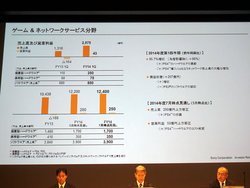 G&NS分野の売上高は、前年同期比95.7%増加し、2,575億円。これは、2013年11月に発売したPS4のハードウェアの貢献、ならびにPS4導入にともなうネットワークサービス収入の大幅な増加が主な要因。これにより、営業損益は前年同期の164億円の損失に対し、当四半期は43億円の利益を計上した。PS4購入者の半数がPS Plusにも加入しているとのことで「好調な要因はやはりPS4が順調に拡大していることが大きい。それとともにPSネットワークではPS Plusなど課金を伴うユーザーも増えている」(業務執行役員 svp 十時裕樹氏)という。