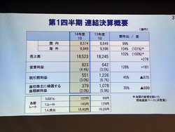 河井氏は増税による反動減について「想定より少なかった」とコメント。なお、「2Qは収益拡大を図る」としながら「全体的に慎重にみていく」としており、2014年度の通期連結業績見通しについては前回公表値を据え置き、売上高は7兆7,500億円、税引前利益は1,200億円、営業利益は3,100億円、当期純利益は1,400億円としている。