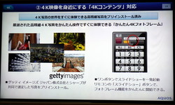 なお写真については、リモコンの最上部にある「スライドショー」ボタンを押すと、ワンボタンでスライドショーを一発起動。フォトフレーム機能をかんたんに開始できる。また本体には、ゲッティイメージズとシャープが共同で選定した写真がプリインストールされている。