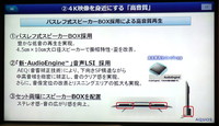 4Kコンテンツについては、HDMI入力4系統のうち1系統がHDMI 2.0(4K/60p対応)とHDCP 2.2に対応しており、6月に開局した4K試験放送「Channel 4K」、および'15年3月までに開始される予定の、スカパーによる商用4K放送などを、チューナーを介すことで視聴することができる。