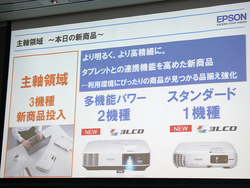 “多機能パワーモデル”に位置づけられる2機種と、“スタンダードモデル”に位置づけられる1機種をラインナップしており、いずれもエプソン独自の3LCD投影方式を採用し画質を高めている。詳細は以下の通り。