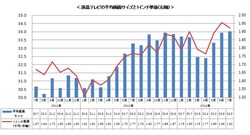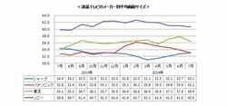 一方、パナソニックは、この2月に平均画面サイズが、36.2と急速に大型化。東芝に急接近した。しかし、以降徐々に戻り、7月にはシャープと同じ33.1に落ち着いている。