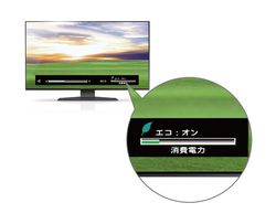 コンテンツを視聴しつつ不要な電力の節約ができるエコモードが本機より搭載された。常に消費電力を低減する「オン」、電源がオンのときに音量に合わせて自動的に消費電力を低減する「オート」、消費電力を低減しない「オフ」の切り替えが可能。消費電力はオンスクリーンにメーターで表示できる。
