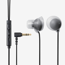 ドライバーはφ9mmのダイナミック型で、再生周波数帯域は20〜20,000Hz。インピーダンスは16Ωで、音圧感度は100dB/mW。スマホ対応マイク付きモデルはL字型の4極プラグで、再生/停止/音量調整/着信応答などの操作が可能なリモコンも付属する。