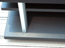 いずれも、本体カラーはブラックとアーバンブラウンの2色を用意。天板には高級感のあるガラス材を採用し、ブラックモデルではヘアラインウッド加工を表面に施してインテリア性を向上させている。棚板は3段階の可変式で、設置機器にあわせて高さ位置を調整できる。