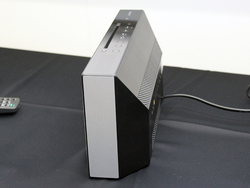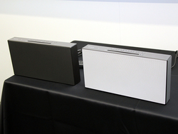 本体サイズは、レシーバー部が外形寸法170W×132.5H×222Dmm/質量1.4kg、スピーカー部が132.5W×214H×207Dmm/質量1.7kg(1台)。スピーカーは、90度傾けて横向きに設置することもできる。横向きにするとレシーバー部と同じ高さになり、省スペースでフラットが設置が可能だ。本体カラーはブラックとホワイトをラインナップする。