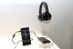 ハイレゾ配信サイト「e-onkyo music」が、欧州/米国/イギリスで展開予定であることも明らかにされた。こちらも詳細なスタート時期は未定。会場にはヘッドホンとポータブルヘッドホンアンプによるハイレゾ試聴コーナーが用意され、e-onkyo musicで配信中のハイレゾ音源を楽しめる趣向に。e-onkyo musicのロゴも、人通りが多いブース通路側の壁面に大きくアピールしていた。