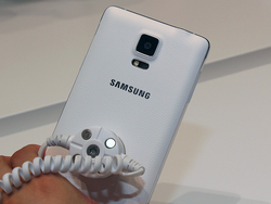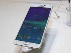 同社スマートフォンの新フラグシップとなるGALAXY Note 4は、解像度2,560×1,440/5.7インチのQuad HD SuperAMOLEDディスプレイを搭載する大型スマートフォン。CPUはSnapdragon 805/Exynos 5433プロセッサを採用する。カメラ機能は1,600万画素のメインカメラと370万画素のサブカメラを備えている。