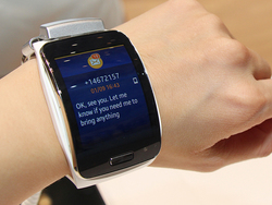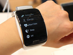 最後に、先月発表されたばかりのTizen OS搭載スマートウォッチ「Gear S(関連ニュース)」もさっそく体験できたのでご紹介したい。本機は本体に2G/3Gモデムを内蔵し、単体でインターネット接続できることが特徴のモデル。ディスプレイの裏側にSIMスロットを搭載しており、ユーザーが任意のSIMカードを挿入して使える。