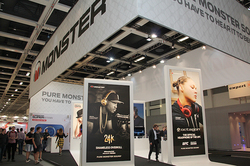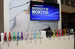MONSTERは、既に発売中のモデル群を揃えてアピール。総合格闘技イベント「UFC」とのコラボモデル「OCTAGON」や、アディダスとコラボしたモデル、「DNA」や「Inspiration」などがずらりと登場していた。また、Bluetoothスピーカーの新モデル「SUPERSTAR」も展示していた。