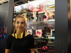 ドイツ・ベルリンにて現地時間9月5日から開催されている「IFA 2014」。SMS Audioのブースでは、Intel Corporationと共同開発中のイヤホン「BioSport」を目玉にアピールしている。