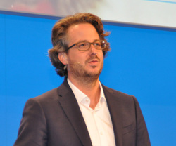 冒頭にメッセ・ベルリン社 IFAグローバル統括本部長のイエンズ・ハイテッカー氏が登壇し「1945年の創立以来、絶えずオーディオの進化をリードしてきたゼンハイザーがこのステージに参加してもらえたことをとても光栄に感じている」と述べ、ゼンハイザーの二人のCEOを壇上に招いた。