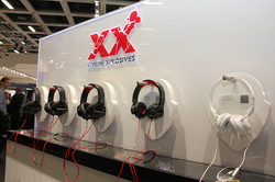 「JVC」は、デジタルムービーカメラ“Everio”シリーズや、スポーツカム"ADIXXION”をアピール。ヘッドホン“XXシリーズ”や、日本では先日発表されたスポーツヘッドホンの新製品「HA-ETR40/ETX30」などを展示した。