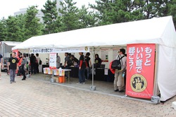 「いい音ユニオン」はフェス会場となった潮風公園の一角に出展されているのだが、ライブ開演前から多くの来場者がブースに立ち寄り、各社製品に耳を傾けていた。普段はあまりオーディオとは馴染みの薄いであろうと思われる来場者も足を止めて、ブース説明員の解説を熱心に聞いていたのが印象的だった。