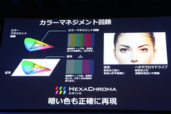 またAX800にも搭載されていた高画質化技術「ヘキサクロマドライブ」(HEXA CHROMA DRIVE)を搭載。RGBの3つの座標軸だけで映像処理を行うのではなく、補色である「CMY」も加えた6つの座標軸で補正することで、色彩豊かで忠実な映像を再現できるとしている。