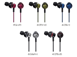HJX5は再生周波数帯域が5Hz〜25kHz、インピーダンスが16Ω、音圧感度が103dB/mW、最大入力は100mW。レッド/グリーン/ブルー/シルバー/ブラックの5色をラインナップしている。