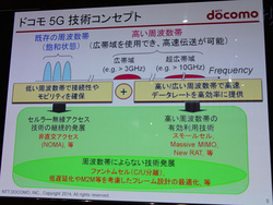 技術コンセプトとしては、既に飽和状態である既存の低周波数帯に、電波が飛びにくいが高速伝達が行える広帯域の高周波数帯を組み合わせるというもの。低周波数帯のマクロセルで接続性やモビリティを確保し、高周波数帯のスモールセルで高速でデータレートを高効率に提供する内容としている。