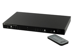 最大4台のHDMI機器を、2つのテレビやディスプレイ装置それぞれに出力することで、同時に閲覧することが可能。たとえば、映画をBDプレーヤーからプロジェクターに投影、もう一方でゲームをテレビに出力させるほか、一つの映像ソースを2つのテレビやディスプレイそれぞれに分配させるなどといった使い方ができる。