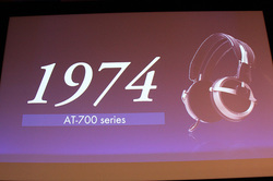 同社は今年で創業52年目。そして初のヘッドホンの発売からちょうど40周年という節目を迎える。「オーディオテクニカは1962年にカートリッジメーカーとして創業しましたが、1974年に第1号ヘッドホン『AT-700』を発売しました。これは、それまで培ってきたカートリッジの音づくりや精密技術を使えば世界に通用するヘッドホンが作れる、という思いからでした」と当時の状況を回想。そして現在では、オーディオテクニカが日本のヘッドホン市場で5年連続シェアNo.1を獲得していることを改めてアピールした。