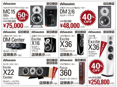 DYNAUDIO製品など最大60% OFFのアウトレットセール、on and onで開催