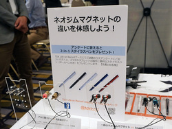 イメーションでは、試聴用に各モデルを並べるとともに、TDK Life on Recordのネオジムマグネット「NEOREC」をアピールする企画展示を展開。解説ボードを用意する一方で、ドライバーが違うテスト機を用意して比較試聴を行えるようにするなどしている。