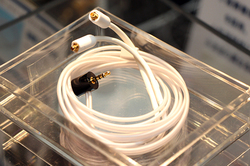 ブースには来年初頭に発売予定のMMCXコネクター採用イヤホン用バランスケーブルが参考出展されていた。価格は未定だが、12,000円より高くなるのでは、とのことだった。
