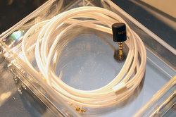 デンマークのケーブルメーカー「estron」社のリケーブル「linum」シリーズも登場していた。estron社は補聴器やカスタムIEMの内部配線に実績を持つメーカー。特徴は、高音質を実現しつつ、非常に細くて軽量かつ強靱なことと。銀メッキを施した銅線6本にケブラー被覆で構成されている。一見、すぐ切れてしまうのではと不安になる細さだが、強く引っ張っても断線しないという。