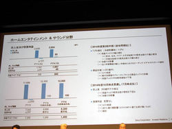 また、テレビ事業を含むホームエンタテインメント&サウンド(HE&S)分野では、売上高が前年同期比7%増の2,824億円となった。これは主に、液晶テレビの販売台数が中南米地域に於いて大幅に減少したものの、欧州、北米、アジア・太平洋地域において大幅拡大したことによるという。テレビ事業単体では、売上高が前年同期比14.7%増の1,997億円となった。