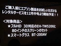 なおエプソンでは、本イベントで体験できるプロジェクターEH-TW5200と、シースルーモバイルビューアーMOVERIOの購入前レンタルサービスを12月中旬からスタートする。実際に普段の生活の中でどんな風に使用できるか、体験してから製品を購入することができる便利なサービスだ。ぜひこちらもチェックされたい。