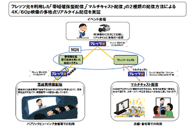 これにより、4K画質のライブ映像を、フレッツ光回線を使って利用用途に適した品質で複数拠点へ配信できることが実証された。NTT西ら3社は、800万契約を突破(NTT西日本エリア、2014年6月30日時点)したフレッツ光を用いることで、多くのユーザーが低価格で利用できるとアピールしている。