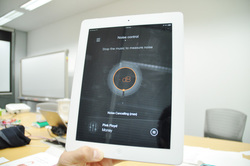 本体左右のハウジングに3基ずつのマイクが搭載されている。NC効果の調整はBluetoothでペアリングしたスマホ・タブレットにインストールした専用アプリ「Parrot Zik 2.0」から行える。例えば電車や地下鉄など、周囲の騒音レベルが高い場所で音楽を聴く際にはNC効果を高め、オフィスでZik 2.0を使って音楽を聴きながら仕事をしたいときには、同社の特許技術“ストリートモード”を活用する。“ストリートモード”に切り替わると、NCを効かせながら周辺の音もヘッドホンから聞くことができる。原理としてはヘッドホンに搭載されている6つのマイクで周囲の音を拾って、ヘッドホンのスピーカーから音楽とともに出力するというものだが、集音レベルをアプリで自在に調節できるのが特徴だ。