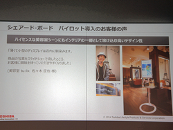 東芝ライフスタイル(株)は、“法人タブレット新市場を拓くAndroid搭載サイネージ”など、デジタルサイネージディスプレイの新製品2シリーズを発表した。Android OSを搭載する“Shared Board(シェアード・ボード)”と、スマートフォンでコンテンツ再生や表示操作が簡単に行える“スマホでサイネージ”をラインナップする。いずれも本日12月4日より販売を開始している。