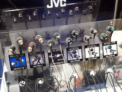JVCケンウッドは、最上位ウッドイヤホン「HA-FX1100」などを展示。取材中にも「FX1100を試してみたい」という来場者が立て続けに現れるなど注目を集めていた。
