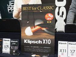 フロンティアファクトリーは、Klipsch(クリプシュ)のイヤホン各種を展示。「X10」を特に大きくアピールしており、「プロミュージシャンの方にも非常に好評をいただいている」(同社スタッフ)とのことだった。