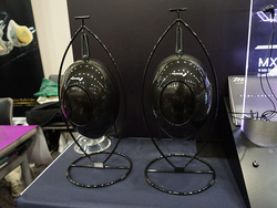 それに加え、吊り下げ型スピーカーも参考展示。こちらはビフレステック製のタマゴ型スピーカーを吊り下げるスタンドとセットにしたもので、この構造によって不要振動を排除して高音質化を図ったもの。価格は未定だが来春の発売を予定しているという。