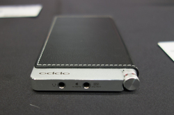 また、「秋のヘッドホン祭2014」でモックアップが公開されたUSB-DAC内蔵ポータブルヘッドホンアンプ「HA-2」の実機も登場した。今回は、実際に試聴を行うことができた。価格は未定だが、発売時期はPM-3と同じく2015年第1四半期を予定。ヘッドホン出力はステレオミニ端子で、入力/ライン出力兼用のステレオミニ端子、USB-A端子、USB-microB端子も備えている。USB-DAC機能については、384kHz/32bit PCMおよび11.2MHz DSDに対応。接続したスマートフォンやプレーヤーへの給電ができるほか、HA-2本体を充電する際は急速充電を行うこともできる。
