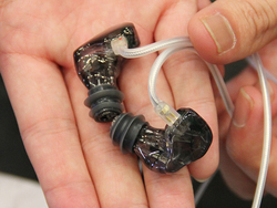 くみたてLabは、正式受注を開始したカスタムIEM「カノン」のスイッチングオプションモデルをメインに出展している。本機は、4ドライバー搭載の従来機カノンに、新しく低域の2ドライバーを追加し6ドライバー構成とした「スイッチオプション」モデル。