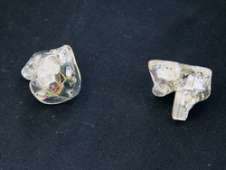 米Sensaphonicsのブースでは、カスタムIEMのデザインにまつわるマイナーアップデートが明かされた。内容は、イヤモニ筐体の先端だけを透明なデザインにするというもの。これは、カスタムIEMを使用していく中で、耳あかなどが筐体内に詰まるのを視覚的に確認できるようにするための配慮。すぐにクリーニングを行い、常に万全の状態でリスニングが行えるようにしているもので、ユーザーからも好評だという。