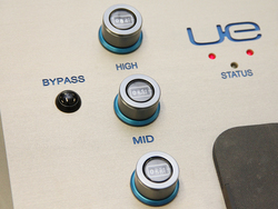 特徴は、筐体に備えたスイッチで駆動するドライバー数を変更できること。6ドライバー全てを駆動する形か、従来の4ドライバーのみ駆動する形を選択可能で、さらに6ドライバー駆動時には「低域を強化した音質」と「全帯域フラットな音質」の2種類に調整できる。