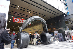 beatsのブースは、ヘッドホンを着けた姿をセルフィー(自撮り)して、同ブランドのCMを疑似体験しようというもの。好みのカラーのヘッドホンを借り受け、特設テント内で写真を撮るという試みだ。