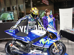 トヨタ「HARRIER」は実際に車内に乗り込むことが可能。そしてヤマハのバイクの両脇にはそれぞれヘッドホンとイヤホン各モデルが用意されており、試聴体験もできるようになっていた。