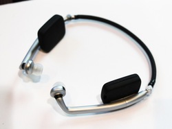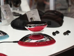 3D SOUND LABSは独自の3Dサウンドを実現するというヘッドホンを出展。ヘッドホン部にジャイロセンサーを装着することで頭の動きを感知し、動画視聴時に頭を動かしても音像が定位させたままにでき、スピーカーで聴くような体験ができるというユニークな機能を備えている。