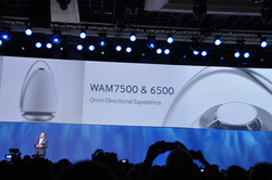 その第一弾の製品として紹介されたのは、リングラジエータータイプのユニットを内蔵する無指向性スピーカー「WAM7500」シリーズ。単体で立体的な音場を再現できるところが特徴だ。サムスンが北米で展開するモバイル端末向けの音楽ストリーミングサービス「Milk Music」と連携した音楽再生も楽しめるという。