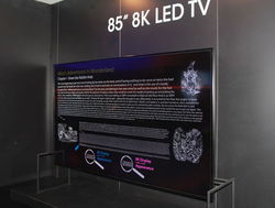 ブース内にはまた、8KのLEDバックライト液晶テレビも展示。将来的に、8K相当からネイティブ8Kへスムーズに移行できることを示唆している。