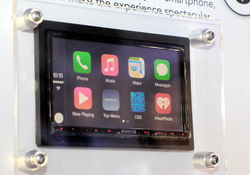 ケンウッドブースは、多彩なカーエレクトロニクス製品群を紹介。特に力を入れて展示しているのは、アップルの「CarPlay」対応のヘッドユニット「DDX9902S」と、Googleの「android auto」対応のヘッドユニット「DDX9702S」だ。