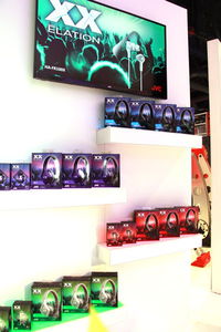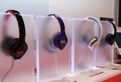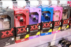 JVCで大きくフィーチャーされているのは、“XX ELATION”というシリーズ名が付けられたヘッドホン「HA-SR100X」とイヤホン「HA-FR100X」。クラブユースを意識したデザインで、いずれもカラバリを4色用意する。ハウジング部には大きく「XX」という文字があしらわれており、いかにもクラブ向けという印象だ。